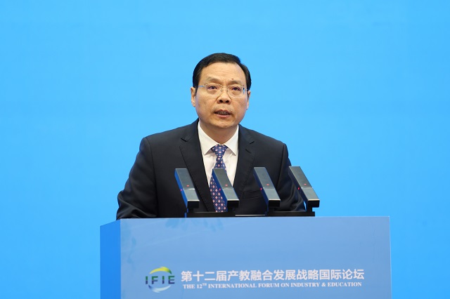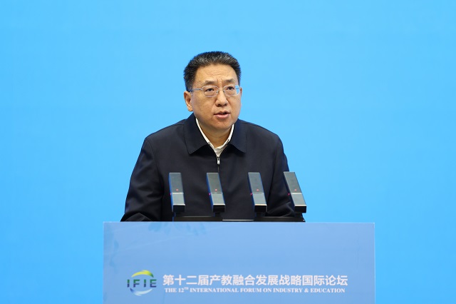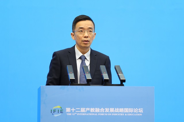 孙明春在致辞中指出,本届论坛在学习贯彻党的二十届四中全会精神、开启“十五五”建设新征程的关键时刻举办,意义重大。产教融合是连接教育链、人才链、产业链与创新链的关键纽带,对服务国家战略、驱动产业升级、深化国际合作具有重要意义。围绕“分类改革、数智赋能、融合创新、合作共赢”四大议题,要深化高校分类改革,筑牢产教融合差异化根基,强化数智技术赋能,重塑产教融合新范式,优化科创协同机制,畅通产学研用价值循环。他倡议高校、企业与国际社会凝聚合力,共同推动产教融合迈向精准化、智能化与国际化,共同书写“十五五”时期产教融合赋能高等教育高质量发展的崭新篇章。