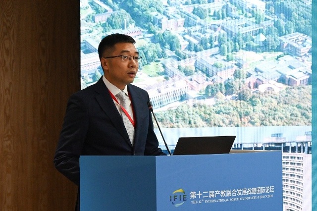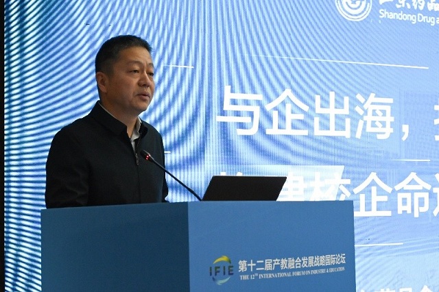 山东药品食品职业学院党委委员、副院长刘恒开以《与企出海,技能共生:构建校企命运共同体》为题,介绍了学校在中医药文化领域职教出海的实践案例。他以在斯里兰卡、印度尼西亚布局海外学院为例,分享了学校从跟随服务”到“主动赋能”、“随企出海”到“助企出海”,双轮驱动构建“校企合作命运共同体”的合作模式和探索。