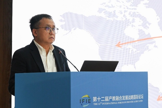 英国萨塞克斯大学教授、浙江工商大学萨塞克斯人工智能学院英方院长盛正国带来题为《全球伙伴关系推动产教融合——人工智能人才培养新模式》的主题报告。他分享了英国萨塞克斯大学与浙江工商大学共建人工智能学院,通过机制创新,构建可持续发展的教育开放新范式的优秀经验。学院聚焦中国新一代人工智能产业关键需求,深度融合萨塞克斯大学先进的教育资源与科研平台,通过建立联合实验室、举办人工智能国际合作会议、构建“行业咨询委员会+海外实习+国际科研项目”的产教融合闭环等方式,实现课程内容与产业前沿同步、人才培养与全球标准对接。这为我国成为具有全球影响力重要教育中心提供了切实可行的参考案例。