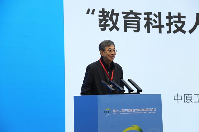 中原工学院学术副校长马建国以《“教育科技人才一体化”初探与实践》为题作报告。他介绍了学校“五破五立”来构建“三位一体”的培养体系的经验做法,包括破人才培养与实际需求的“脱节”,立学校与行业需求零距离的培养新模式;破实践教学和产业实操的“错位”,立产学协同创新育人新机制;破高校考题和企业问题的“高墙”,立产教融合培养新体系;破不同学科和专业之间的“壁垒”,立多学科交叉培养新环境;破第一课堂和第二课堂的“鸿沟”,立科教贯通培养新形式。