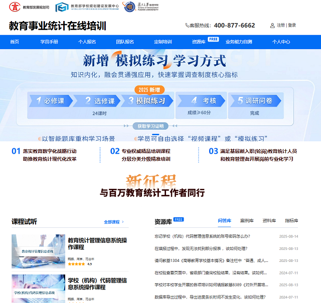 四是升级在线平台:以服务基层能力提升为导向,开展全国教育事业统计工作及人员现状跟踪调查,精准优化在线课程与资源体系,强化学习的针对性和实效性。