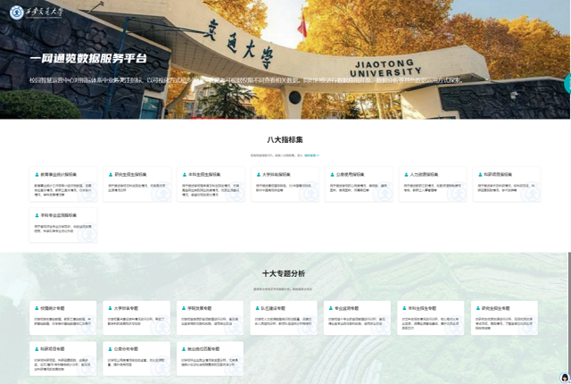 西安交通大学作为教育部直属“双一流”A类建设高校,涵盖11个学科门类,设35个学院、9个本科书院和3所附属医院,是国家重点建设的综合性研究型大学。在教育治理现代化深入推进的背景下,学校将教育事业统计工作作为校内决策与日常管理的重要支撑。学校教育事业统计工作面临四大问题:一是数据“碎片化”,跨部门系统数据分散,三级协同不畅,获取耗时久;二是分析“浅层化”,仅能基础汇总,缺乏结合学科特色的深度分析;三是服务“表层化”,平台仅提供宏观数据,未能适配学院的实操场景。为破解教育事业统计工作难题,结合政策要求与办学实际,学校响应依法统计、严控数据质量,助力自身高质量发展。