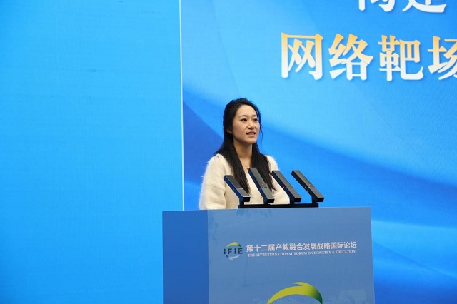 中国电子六所网络靶场研发中心主任李维皓以《构建智慧教育安全新生态:网络靶场赋能应用型人才协同培养》为题作报告。她介绍,网络安全行业已经从合规驱动主导走向“合规+价值”双驱动,要保障教育生态,筑牢网络空间安全 “人才底座”。她表示,要面向网络安全企业与行业需求,构建集学、训、演、竞、评等资源共享平台,推行“学-练-用”一体化人才培养路径,通过有组织科研的方式,推动“大院大所”与地方应用型、技能型高校联动,形成企业出题、高校解题,双师型教师队伍建设的协同发展生态。