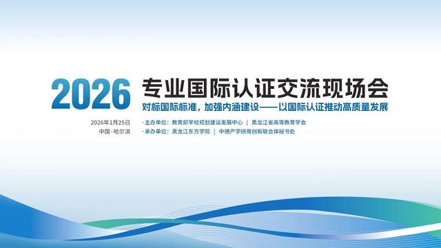 1月25日,由教育部学校规划建设发展中心、黑龙江省高等教育学会联合主办,黑龙江东方学院、中德产学研用创新联合体秘书处共同承办的专业国际认证交流现场会在哈尔滨举办。