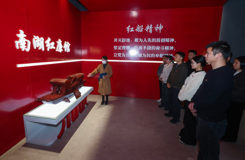 2026年1月28日,浙江省嘉兴市南湖区东栅街道机关党委组织青年党员干部参观南湖红廉馆。(新华社记者 徐昱/摄)